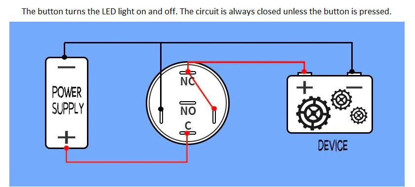 Round Metal Blue Push Button Latching Switch 19mm with Wiring Harness