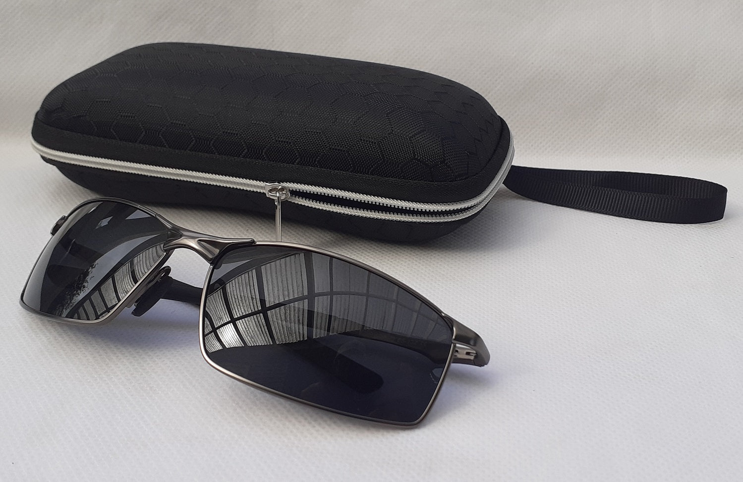 Sunglasses Metal Alloy Grey Frame / Black Lens with Zipper Case